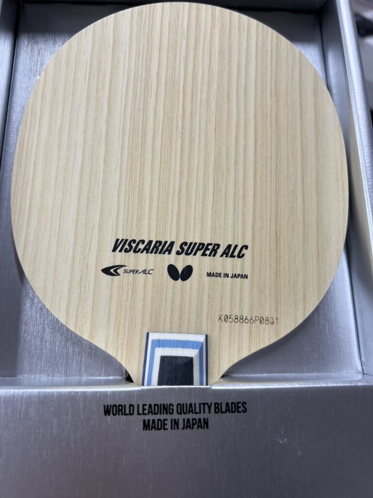 今回ご紹介するのは、バタフライ新商品ラケット【ビスカリア SUPER ALC CS】の高密度な木目が全面に詰まっているため、スイートスポットが広く、打球のブレを最小限に抑えられるラケットになります。