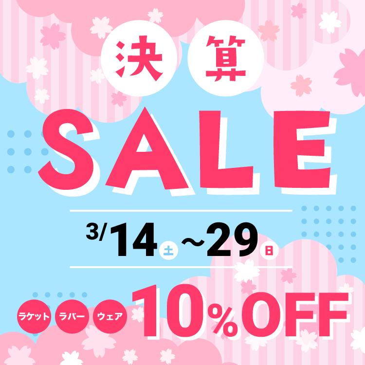 セール期間中、ラケット・ラバー・ウェアが10%OFF!