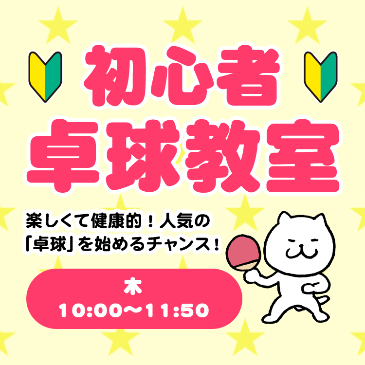 誰でも手軽に始められて老若男女が楽しめるスポーツ「卓球」。当店では初心者の方を対象にした卓球教室を開催しています。新しい趣味として始めてみませんか?